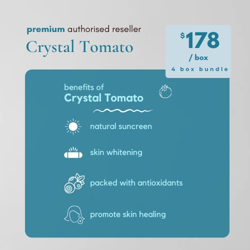 The effectiveness of Crystal Tomato Whitening Supplement was demonstrated in a randomised, double-blind research on melasma patients at the National Skin Centre in Singapore.